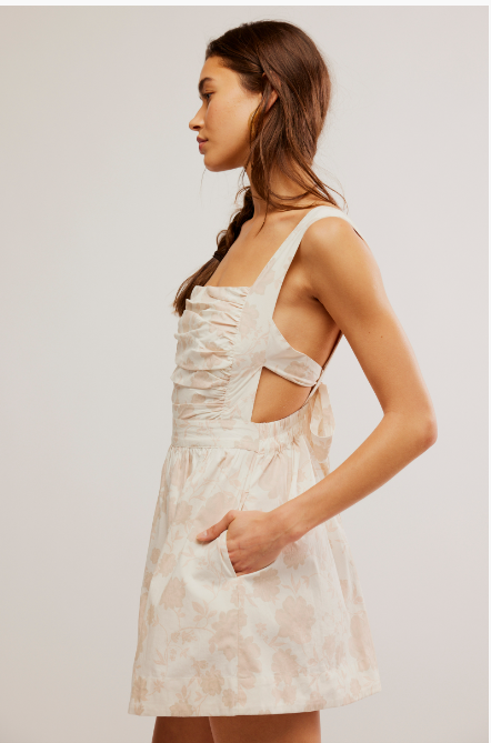 This women’s square – neck ruched mini dress is a sweet and romantic piece. It features a fitted bodice with a flared A – line skirt, creating a feminine silhouette. The dress is made of a lightweight, structured fabric, likely a cotton blend, suitable for warm weather.