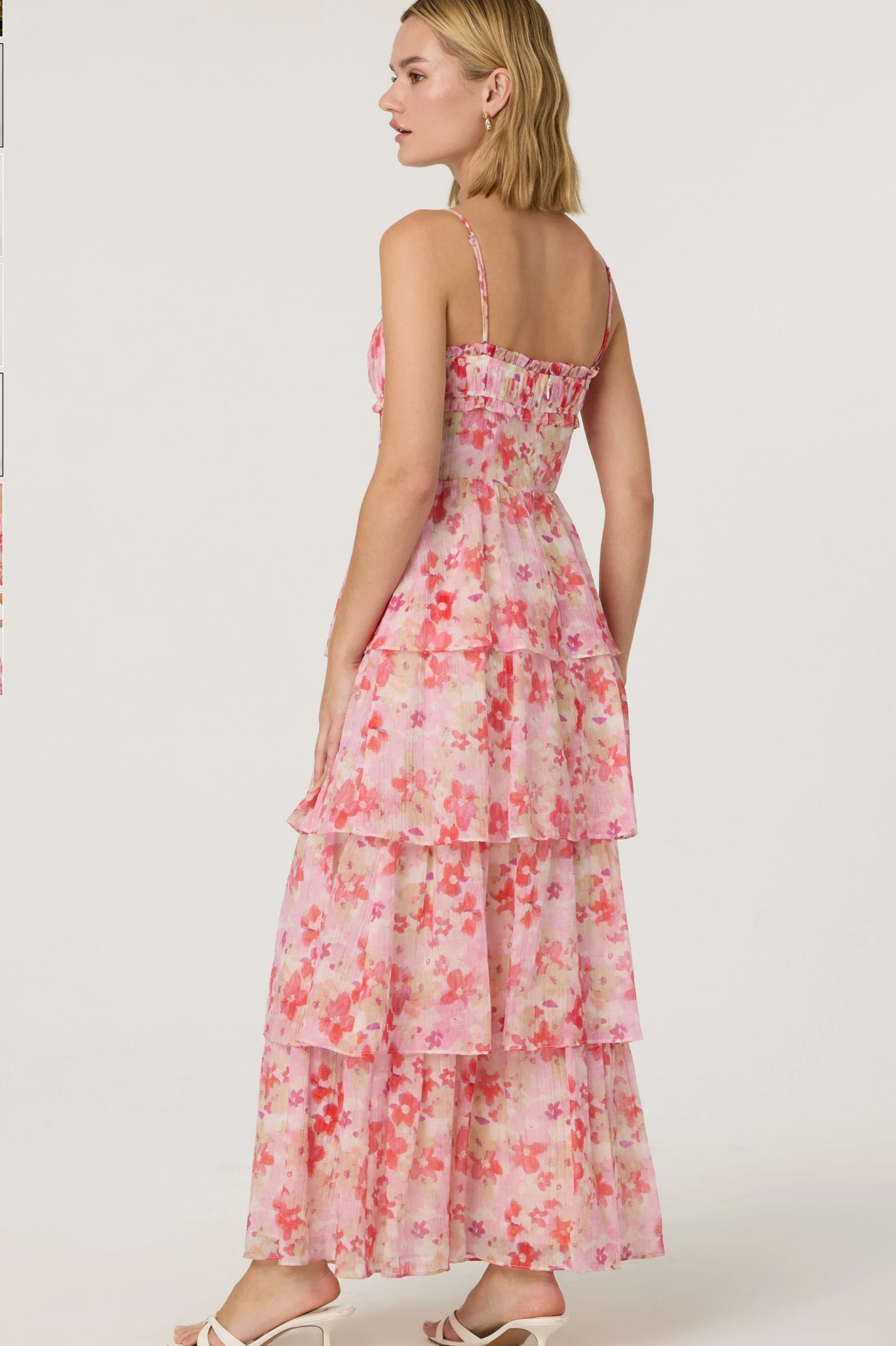 Watercolor-floral Tiered Ruffled Maxi Dress